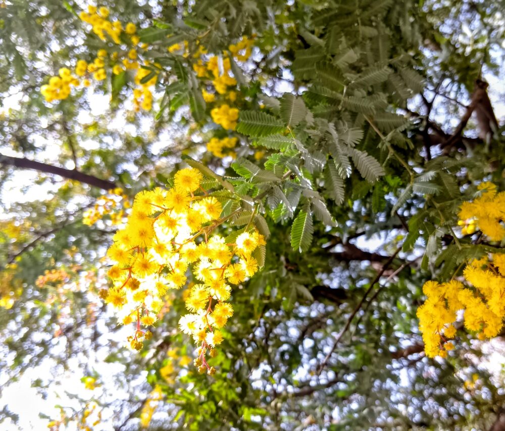 2月だというのにここ数日、春の陽気でミモザが少しずつ開花し始めた熊本メモリアルガーデン。