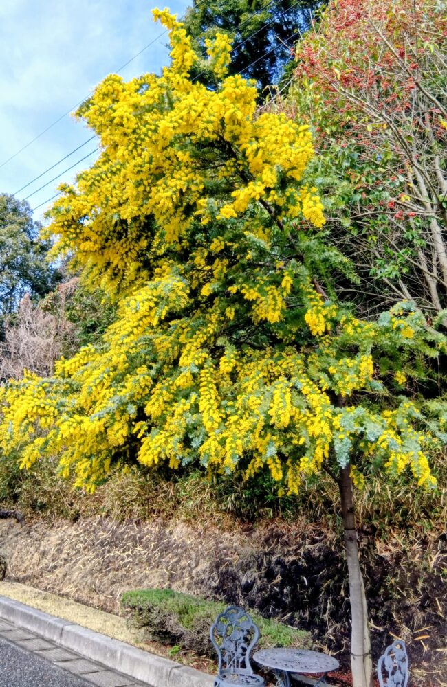 他の木も開花が進み、お客様から「ミモザが綺麗ですね」とお褒めの言葉をいただきます。